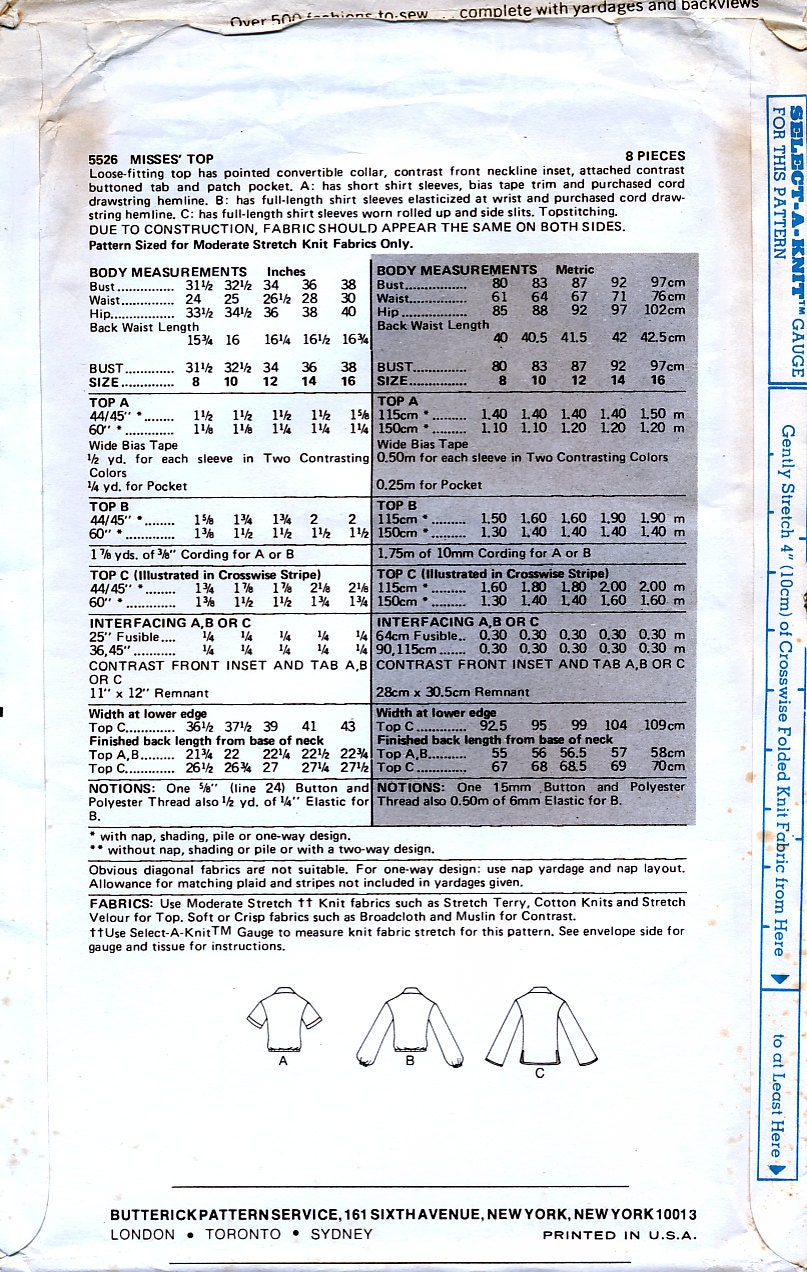 Butterick 5526 Vintage 70s Sewing Pattern For Misses Top Etsy